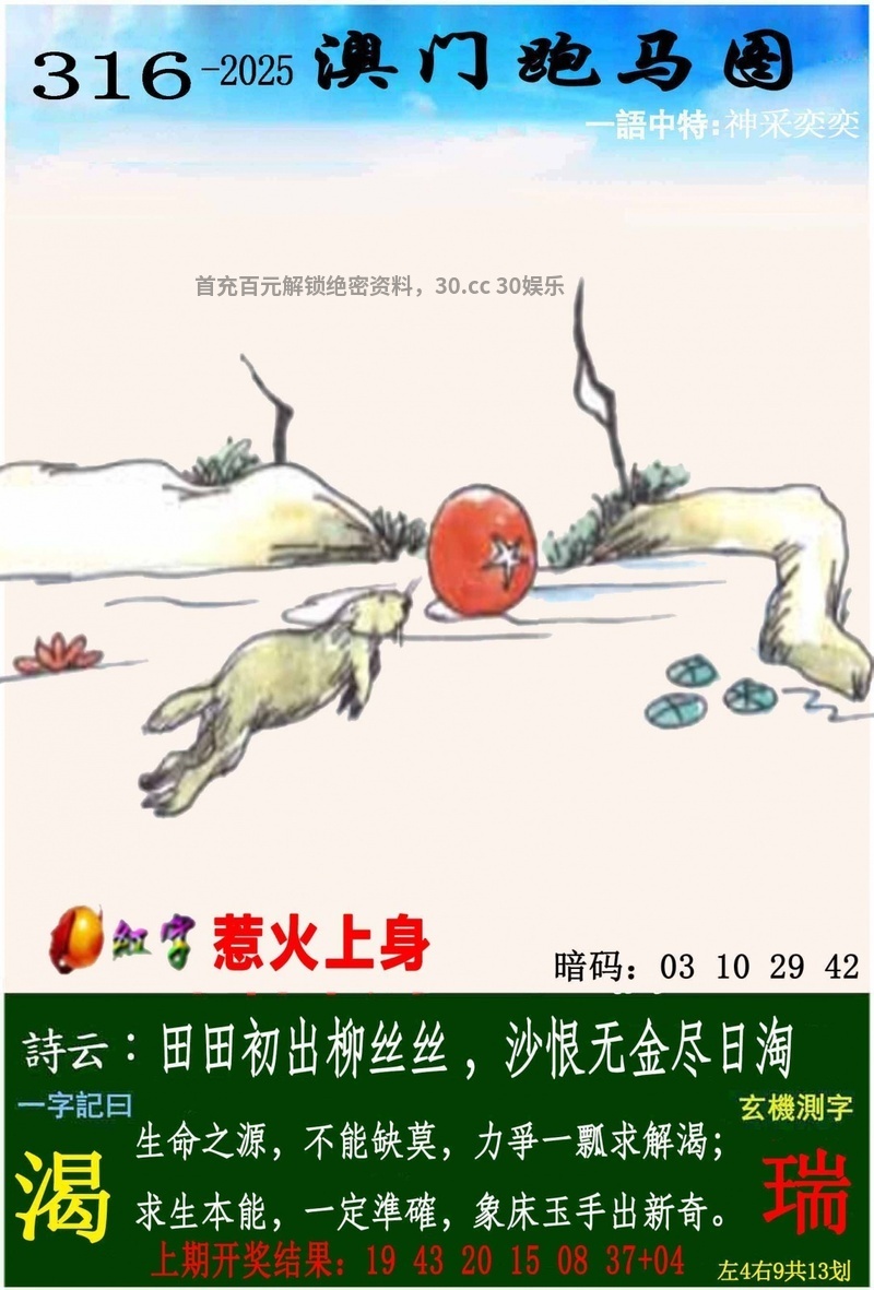 詩雲:生命之源,不能缺莫,力爭一瓢求解渴;求生本能,一定準確,象床玉手出新奇。【瑞】